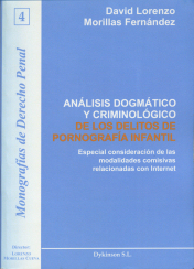El fenómeno de la pornografía infantil no es un hecho nuevo, sino una realidad constante a lo largo de la historia. Sin embargo, el avance de la ciencia y de la tecnología ha permitido la creación de nuevas formas de comunicación entre los seres humanos lo que no sólo ha originado el progreso de la civilización sino también la aparición de nuevas tipologías delictivas. En concreto, la propagación del Servicio Web y del correo electrónico representa una revolución en los sistemas de telecomunicaciones que operan como nueva forma de delincuencia, dejando obsoletas las habituales revistas o vídeos pornográficos infantiles frente a las innovadoras técnicas de producción del referido material. Sobre estos postulados, el libro afronta las cuestiones más relevantes desde una perspectiva penal y criminológica. [Fuente: dykinson.es]